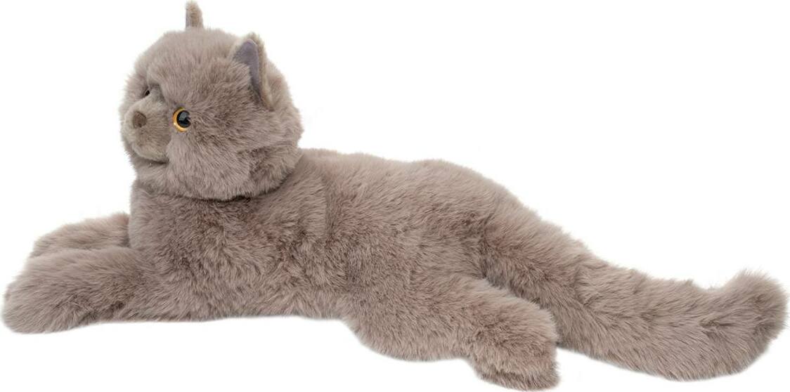 The fluffy form of the Persian breed has been captured in Juliette, Douglas' cuddly Cat stuffed animal! Decadently soft lilac gray plush materials lend her an irresistible texture that will have cat lovers clamoring for more. Her outstretched form invites cuddling and feels right at home lounging comfortably in your lap. Silky polyester fill and gently weighted paws lend to Douglas' kitty's floppy, huggable design. True to her breed, Juliette features a rounded head with full cheeks and small ears. Her bright-eyed expression shines with a brilliant golden glow. Bring this queen of comfort into your home and Juliette the plush Persian Cat will prove to be a captivating companion!